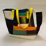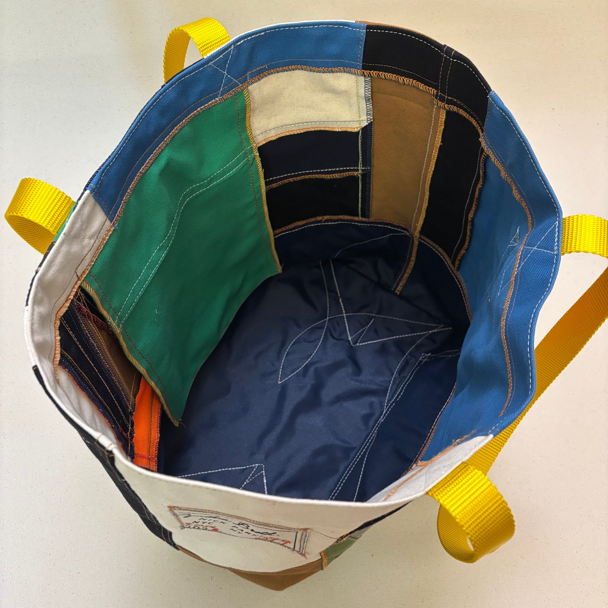 denim , canvas & cotton offcuts and scraps collected over years from cutting out my garments, patched together from Aug.2025 - Jan.2026 on the Juki2516 and topstitched/assembled on the Singer 96sv19