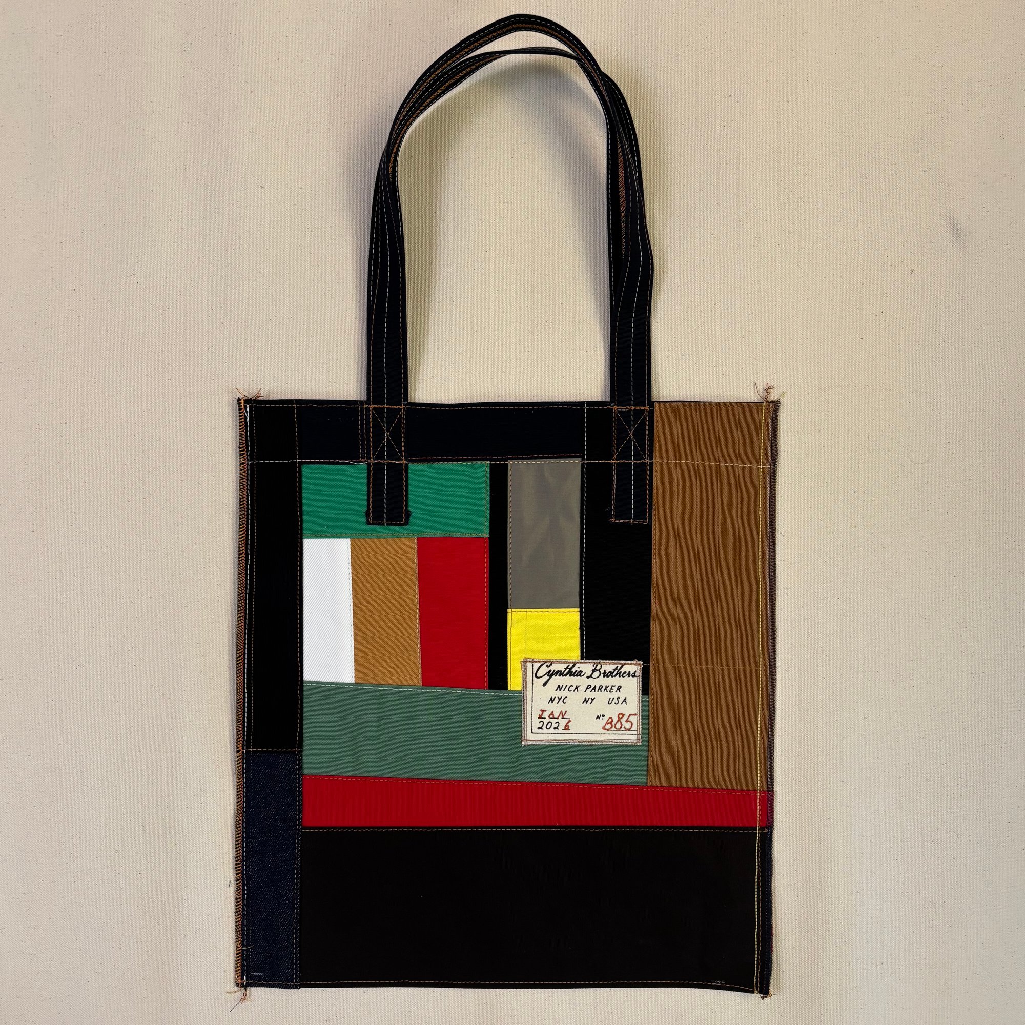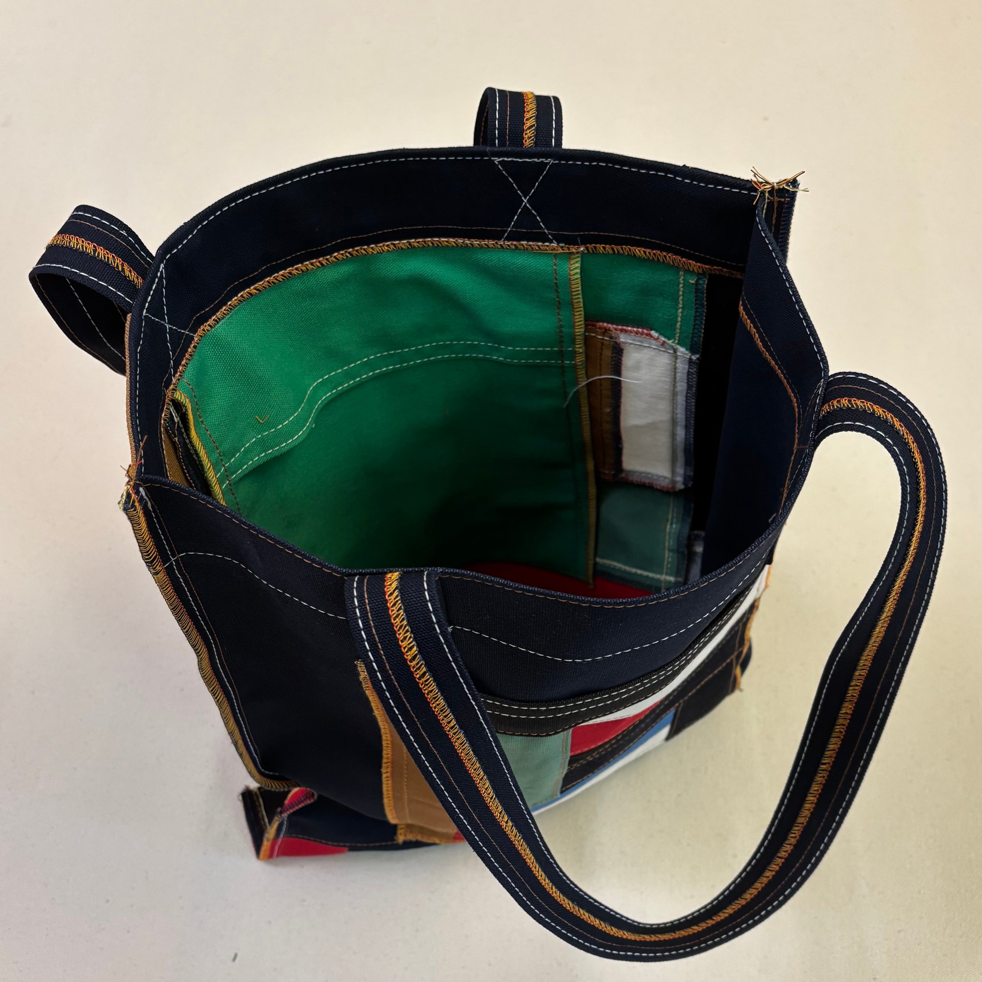 denim , canvas & cotton offcuts and scraps collected over years from cutting out my garments, patched together from Aug.2025 - Jan.2026 on the Juki2516 and topstitched/assembled on the Singer 96sv19